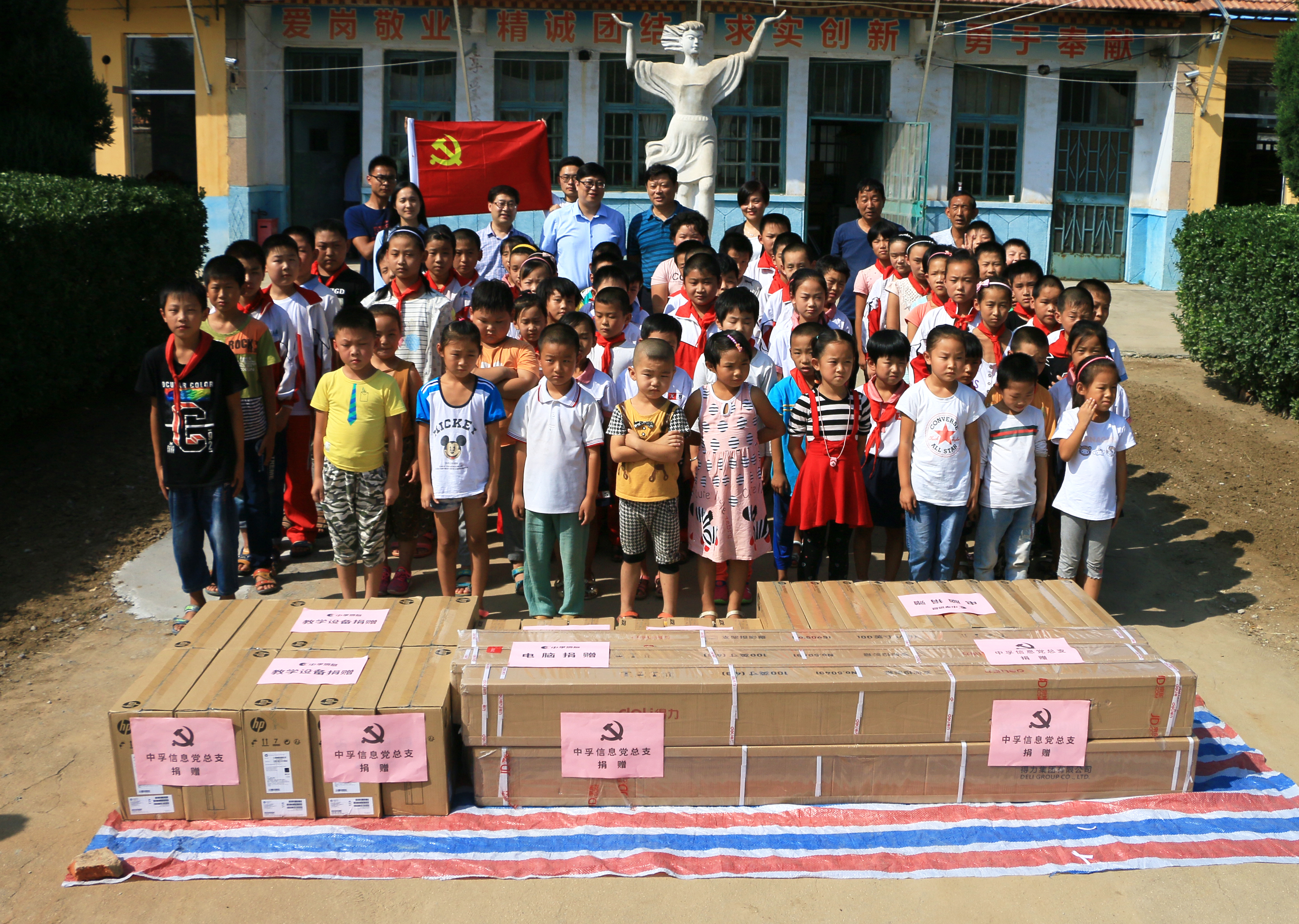 9月8日,suncitygroup太阳集团信息党总支派党员代表赴潍坊市峡山区大双沟头村小学开展贫困助学帮扶活动。