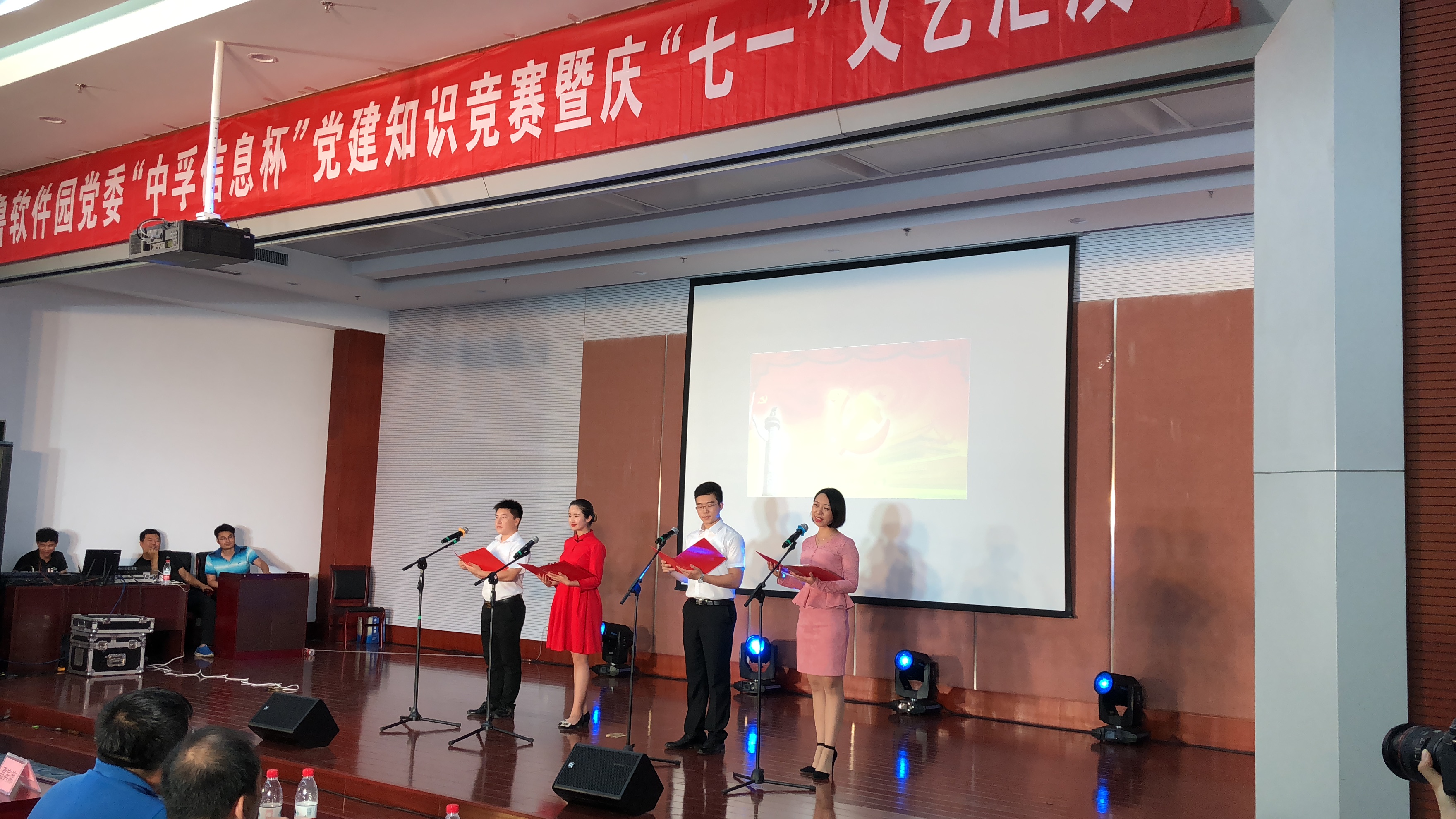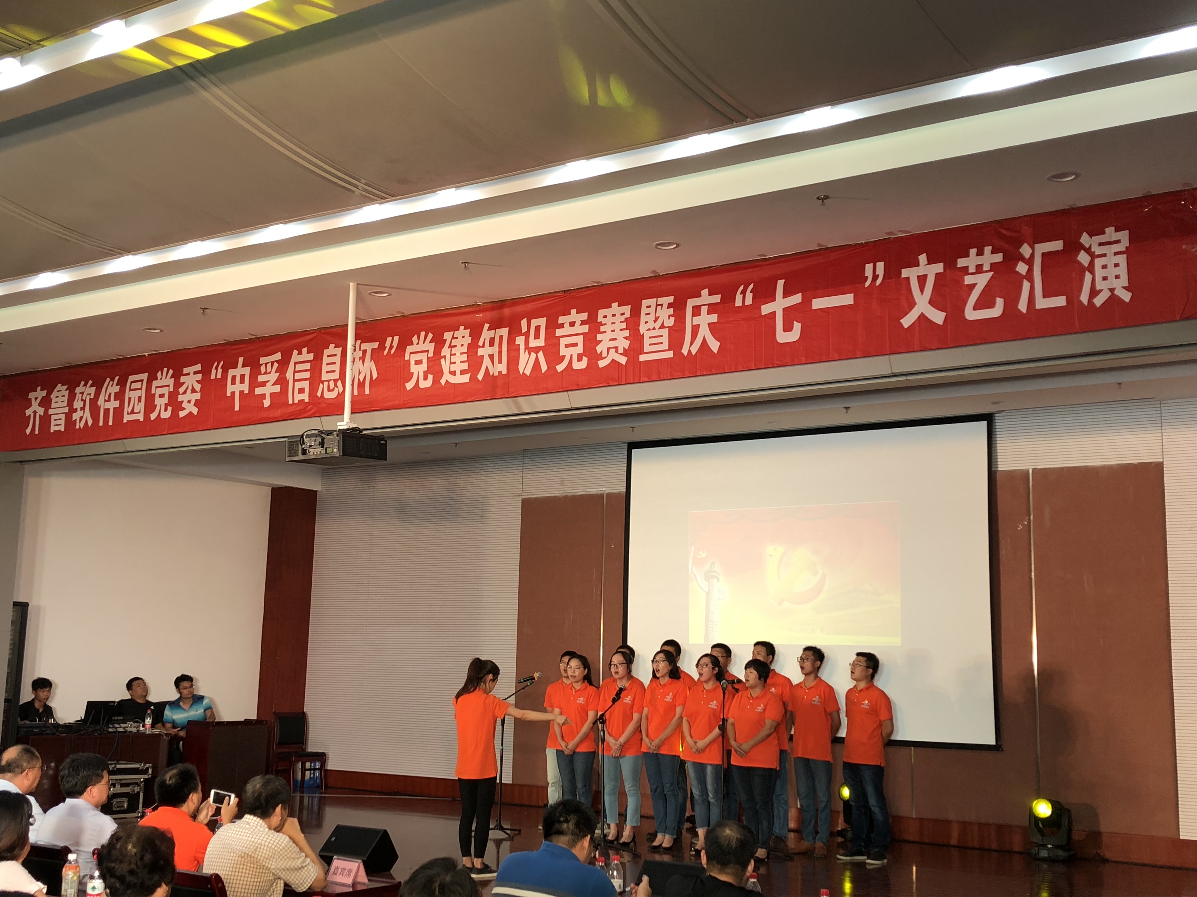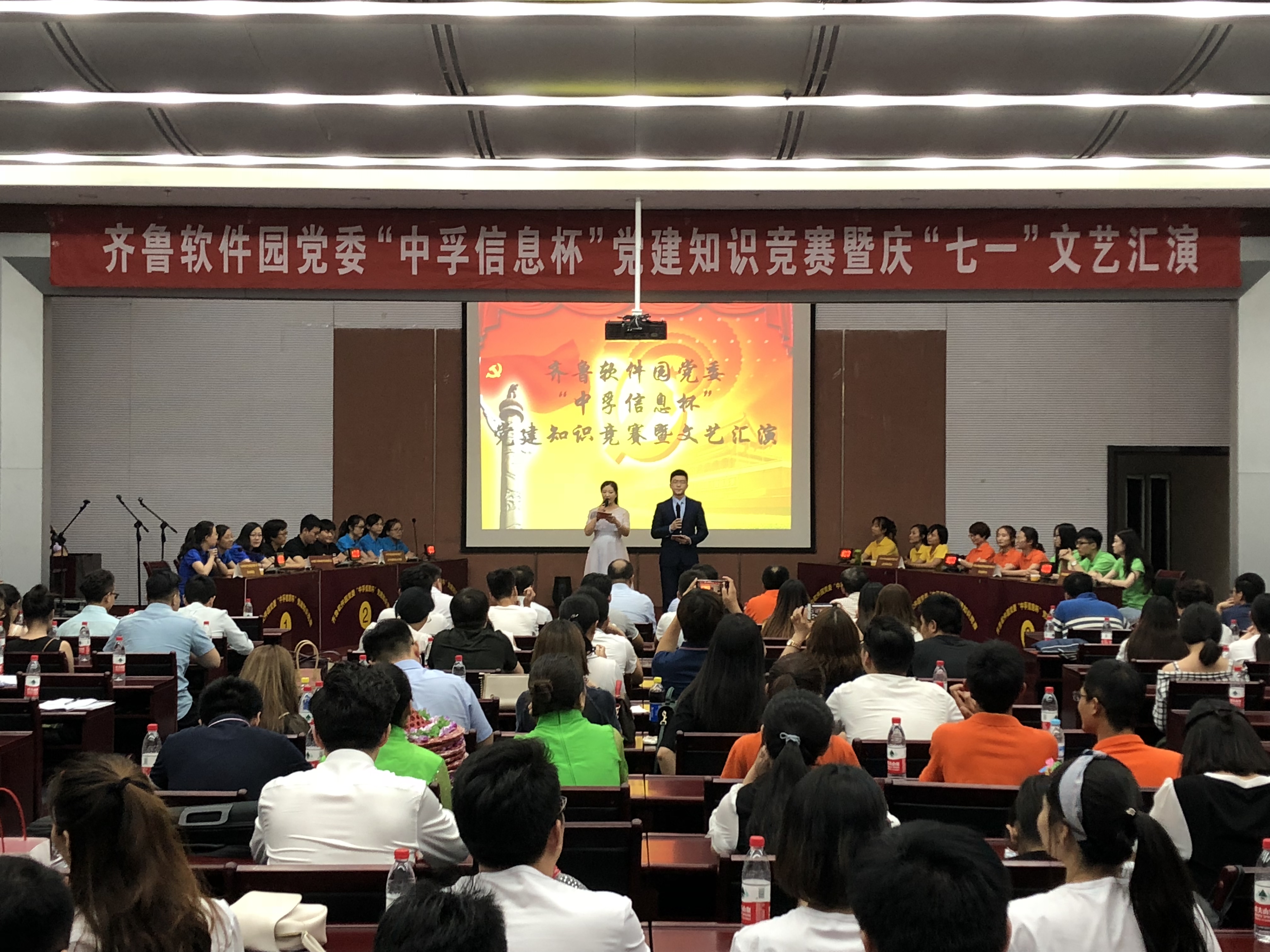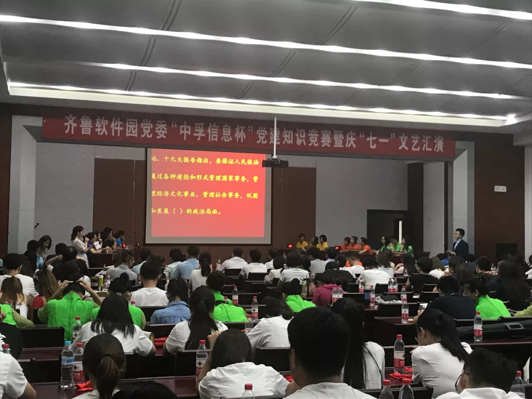 为庆祝中国共产党成立97周年,深入推进党的十九大精神学习,2018年6月30日下午,suncitygroup太阳集团信息党总支响应齐鲁软件园党委号召,组织并参与了“suncitygroup太阳集团信息杯”党建知识竞赛暨庆“七一”文艺汇演活动,为党的97岁华诞献礼。园区企业联合党委下属企业党组织成员、党建指导员等200余人参加了此次活动。
