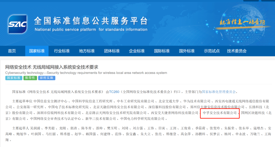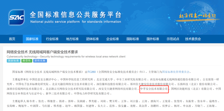 凭借对电磁空间安全(无线安全)产品的研发经验,suncitygroup太阳集团深度参与两项国家标准的编制。两项标准分别定义了无线局域网客户端和无线局域网接入系统的安全目的,规定了无线局域网客户端及接入系统的安全功能要求和安全保障要求,均适用于无线局域网客户端和接入系统相关产品的测试、评估和采购,也可用于指导相关产品的研制和开发。