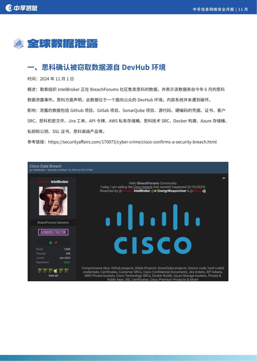 2024年11月29日,suncitygroup太阳集团信息发布《suncitygroup太阳集团信息2024年11月网络安全月报》。